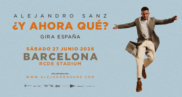 El artista español expande su gira mundial '¿Y Ahora Qué?' tras el éxito rotundo de su paso por México y anuncio en Latinoamérica donde continúa agotando localidades. La gira llegará a España dentro de grandes recintos por todo el país a mediados de 2026. Tendremos oportunidad de ver de nuevo a Alejando Sanz en Barcelona de la mano de Doctor Music. La cita será el sábado 27 de junio de 2026 en el RCDE Stadium de Cornellà, Barcelona.